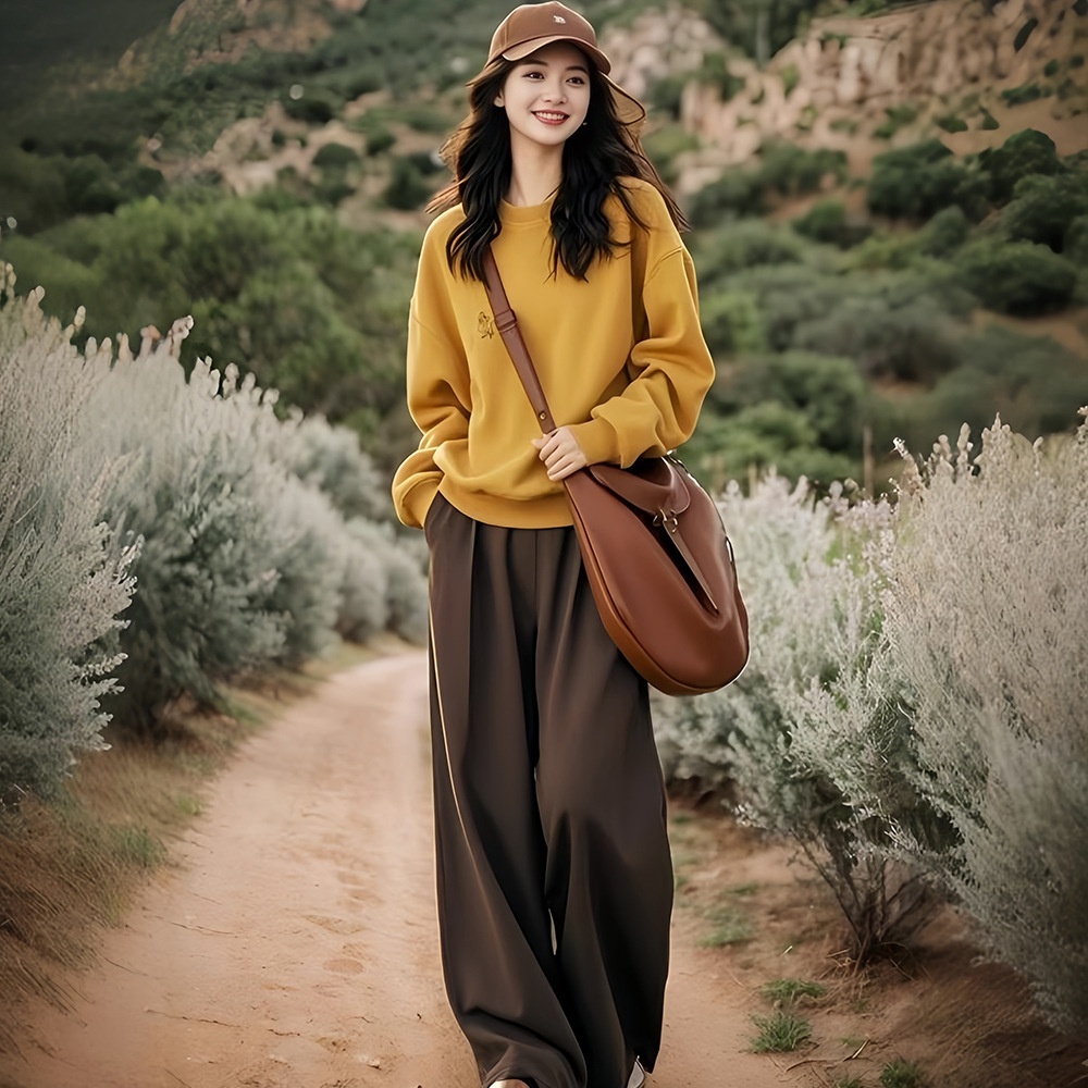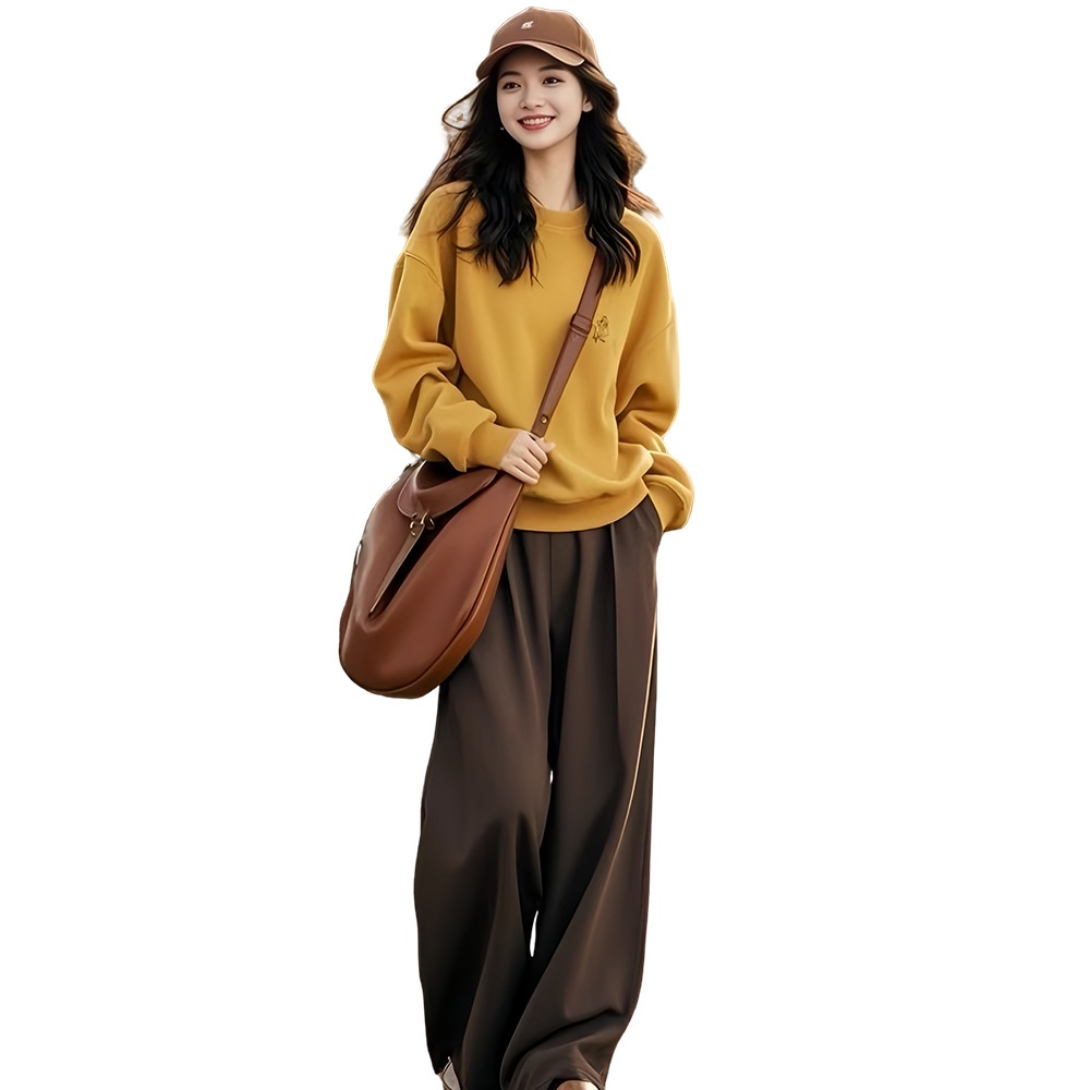 All-match Round Neck Ginger Yellow Sweater For Women,Fashionable And Stylish,No Hat,Small And Lazy Style