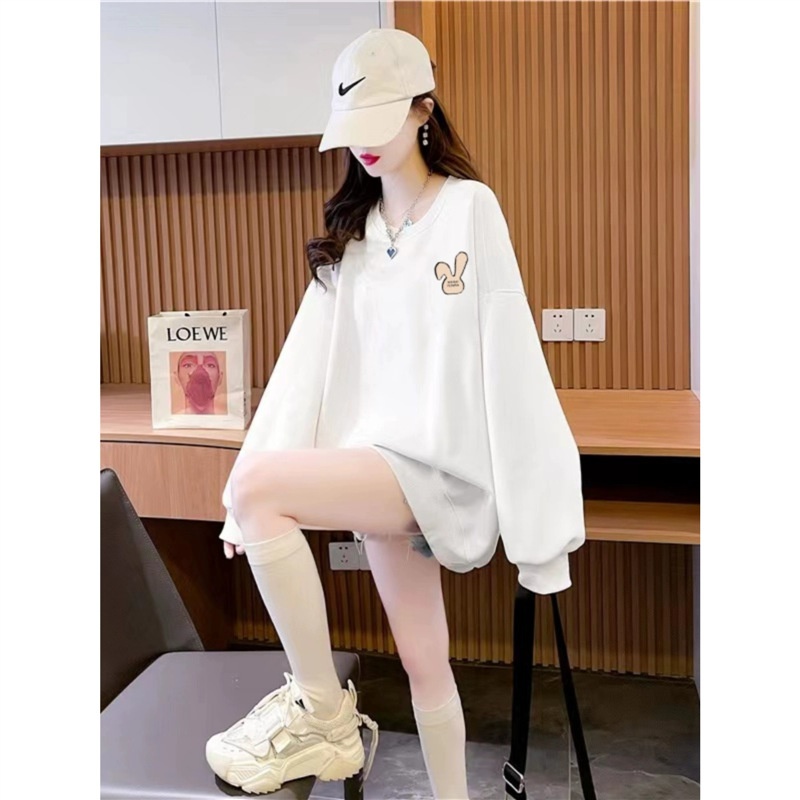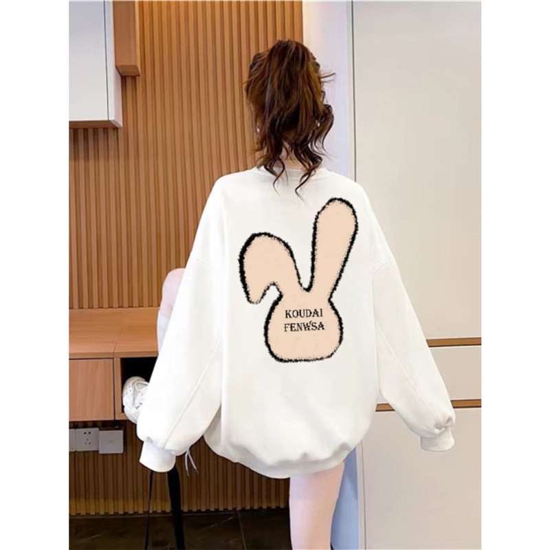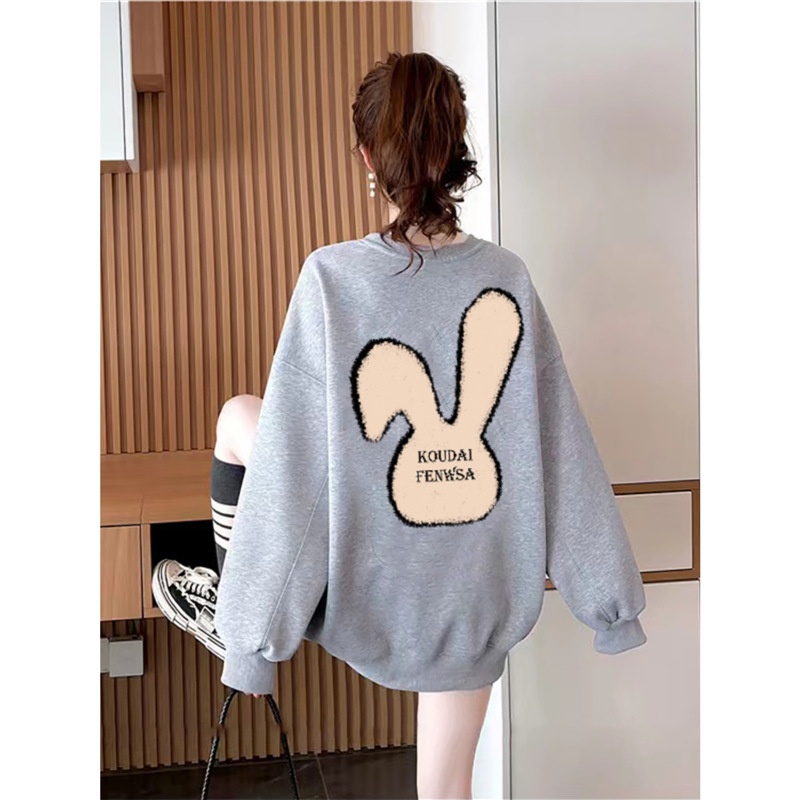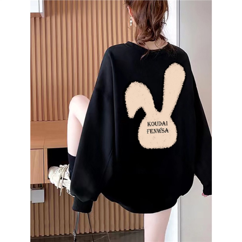 Black Round Neck Sweatshirt For Women Autumn And Winter Plus Velvet Thickened Casual Lazy Style200 Catties Loose Large Size Women's Coat