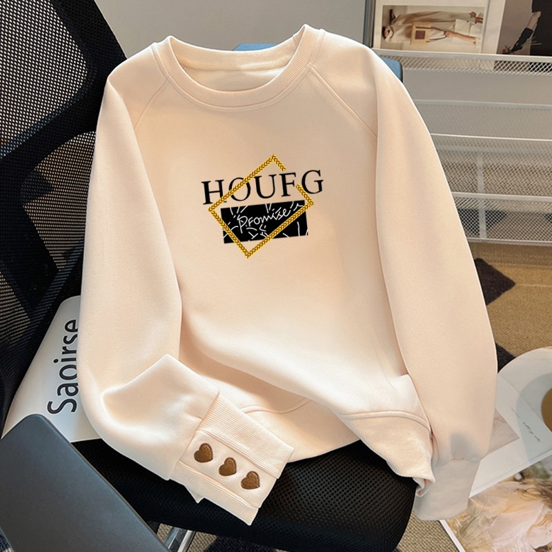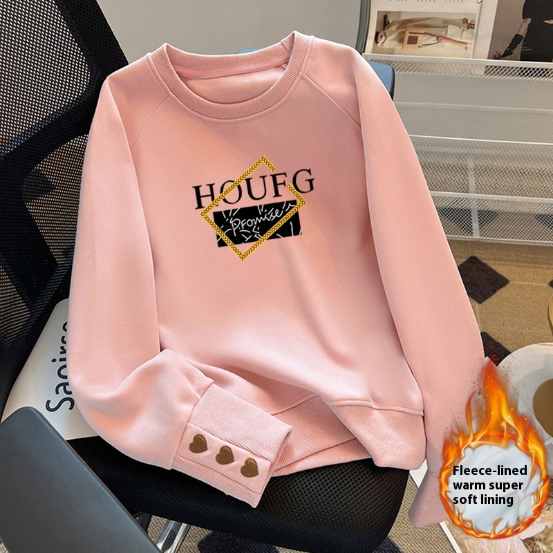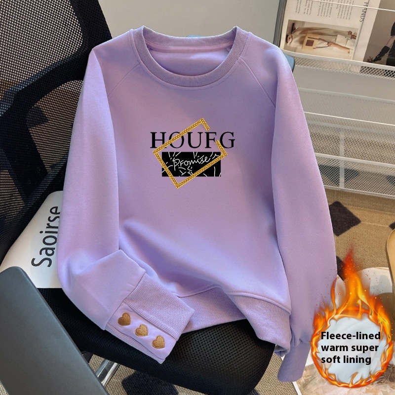 Plus Velvet Thick Outerwear Tops For Women Fashion Casual Drop Shoulder Round Neck Hoodless Sweatshirty