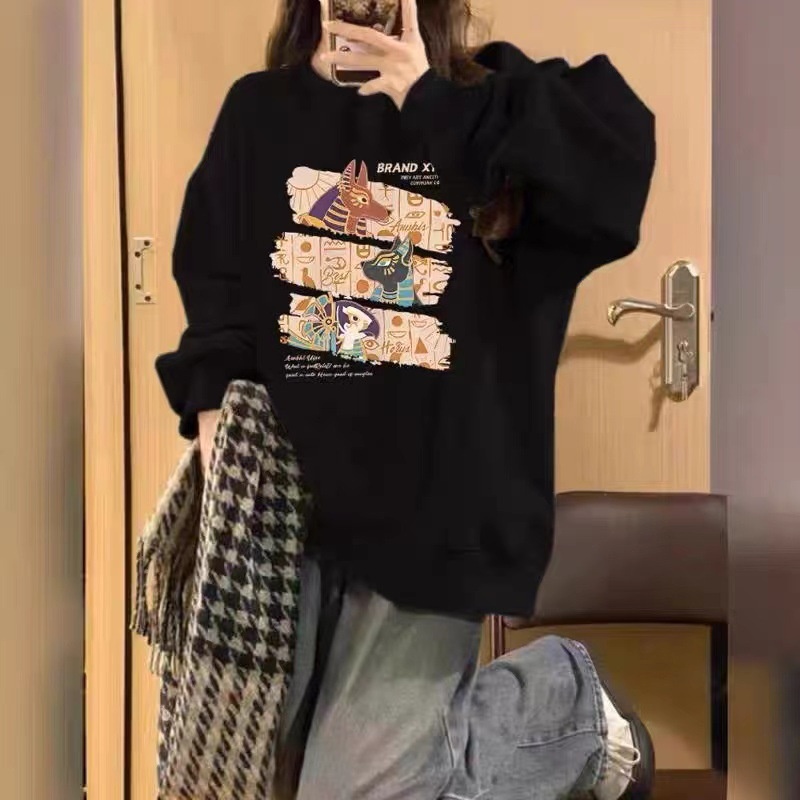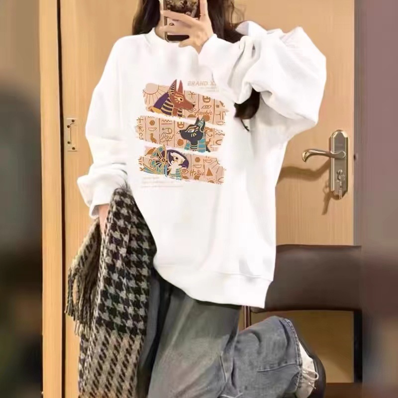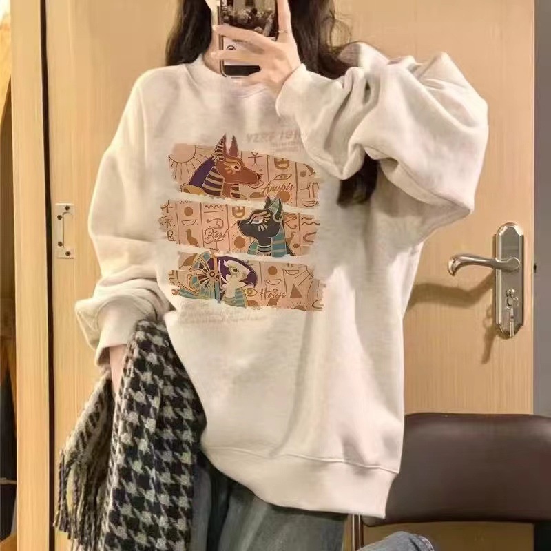 Round Neck Sweatshirt For Women,Small Size,Loose,Large Size,Niche Design,American Retro Gray Pullover Top