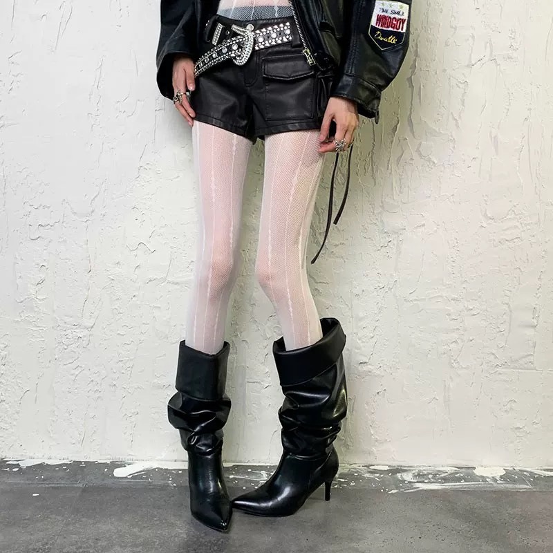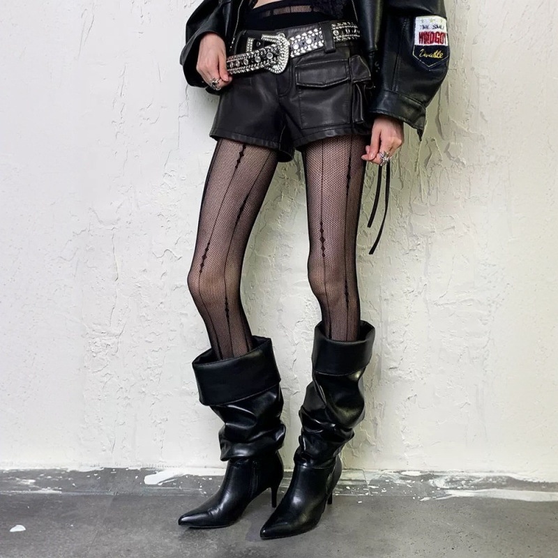 Western Denim Style Brown Line Rhomboid Fishnet Stockings Thin Pantyhose Personalized Niche Plaid Grid Stockings For Women