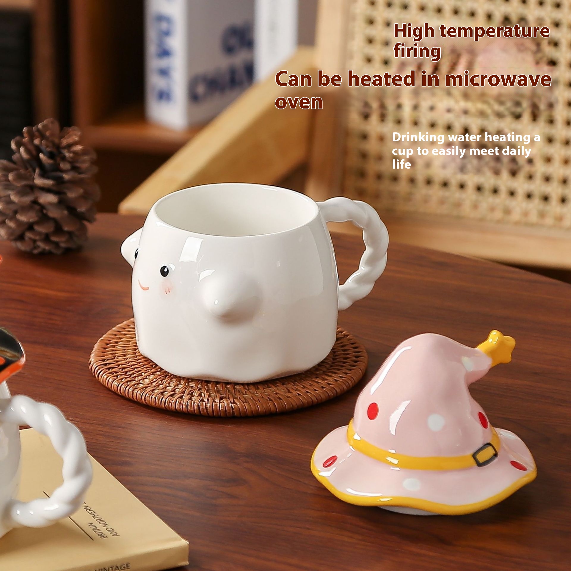 Cute Ghost Ceramic Mug With Lid–Adorable Cartoon Design Cup