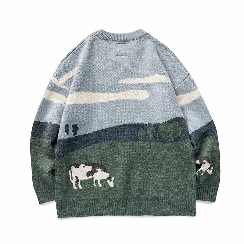 American Fashion Brand Autumn And Winter Japanese Retro Knitted Sweater Round Neck Loose Sweater Jacket For Men And Women