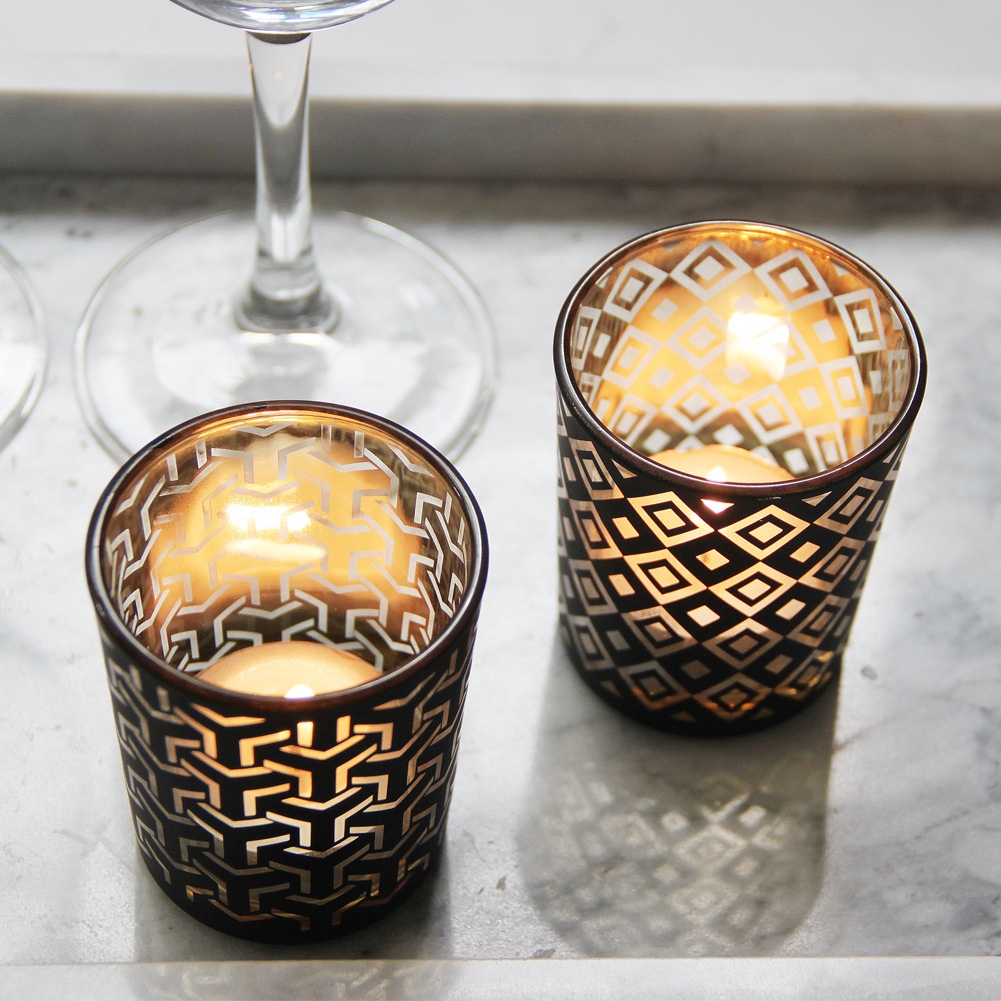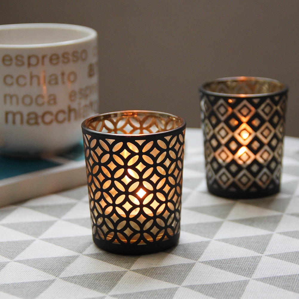 Simple Modern Black And Gold Geometric Pattern Glass Candle Holder DIYIncense Empty Cup Romantic Decoration Pattern