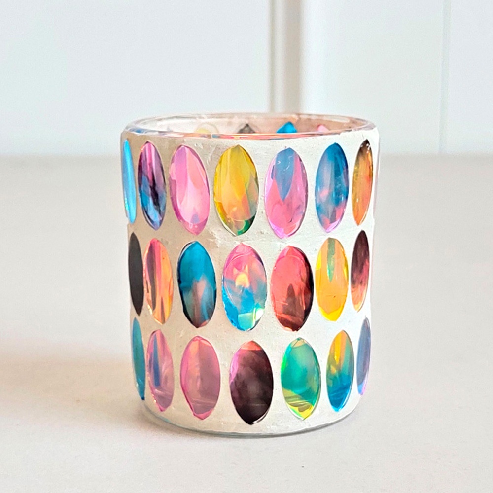 European Style Rainbow Disc Mosaic Glass Candle Holder Romantic Candlelight Courtship Confession Props DIYWax Filling Empty Cup