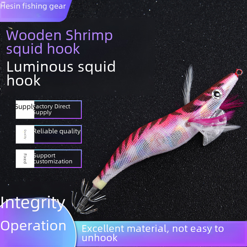 Lure Bait Wood Shrimp Set Multi-spec Night Glow Beads Squid Hooks Wood Shrimp Squid Hooks Suit