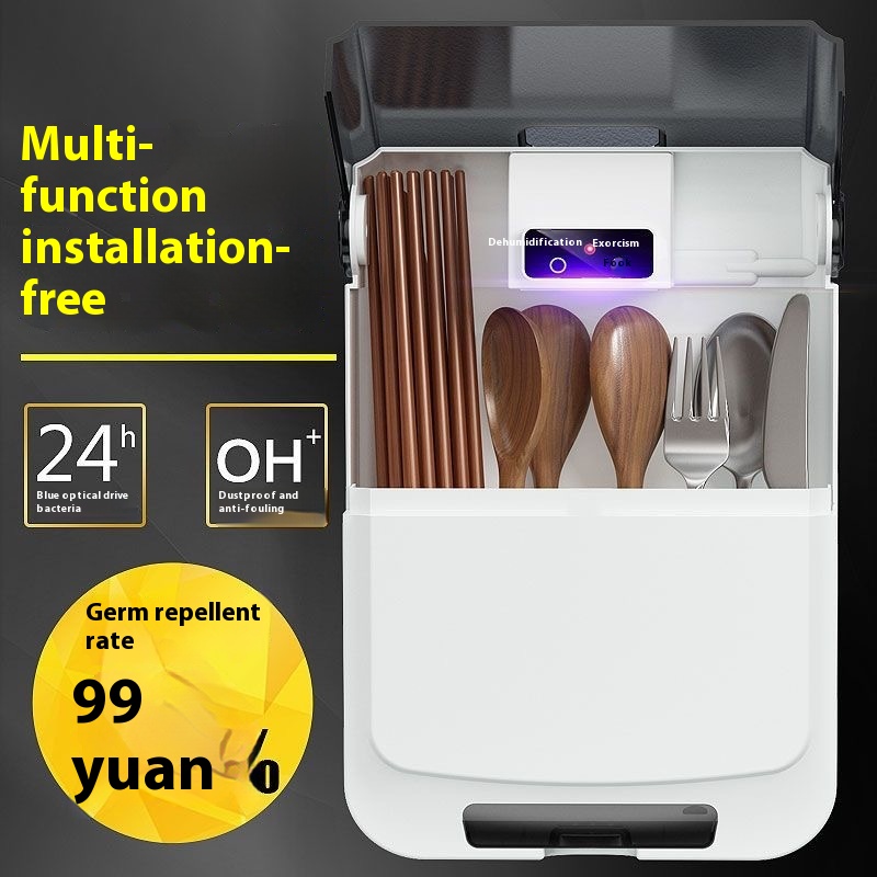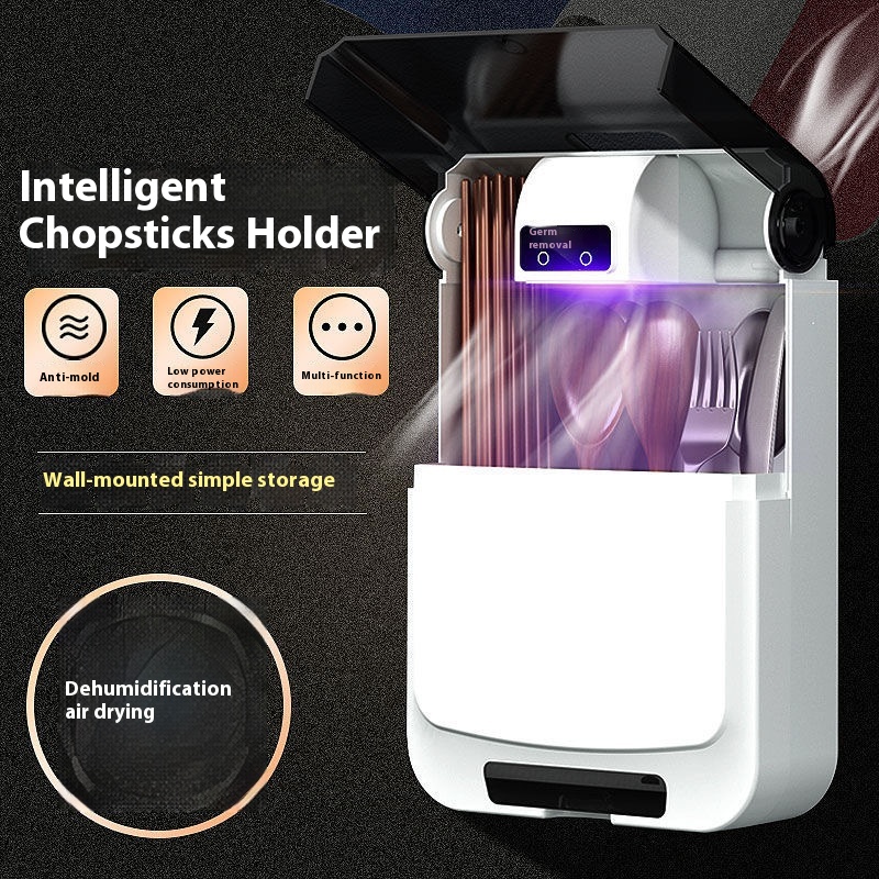 Disinfection Chopsticks Tube Intelligent Hanging Punch-free Home Black Technology Chopsticks Cage Ultraviolet Sterilization Wall Tableware Storage Box