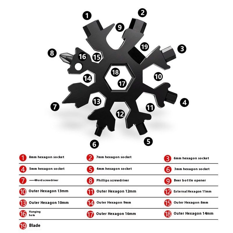 Multi-functional Snowflake Wrench,Versatile Hexagon High Carbon Steel Universal Portable Snowflake Spanner Tool.