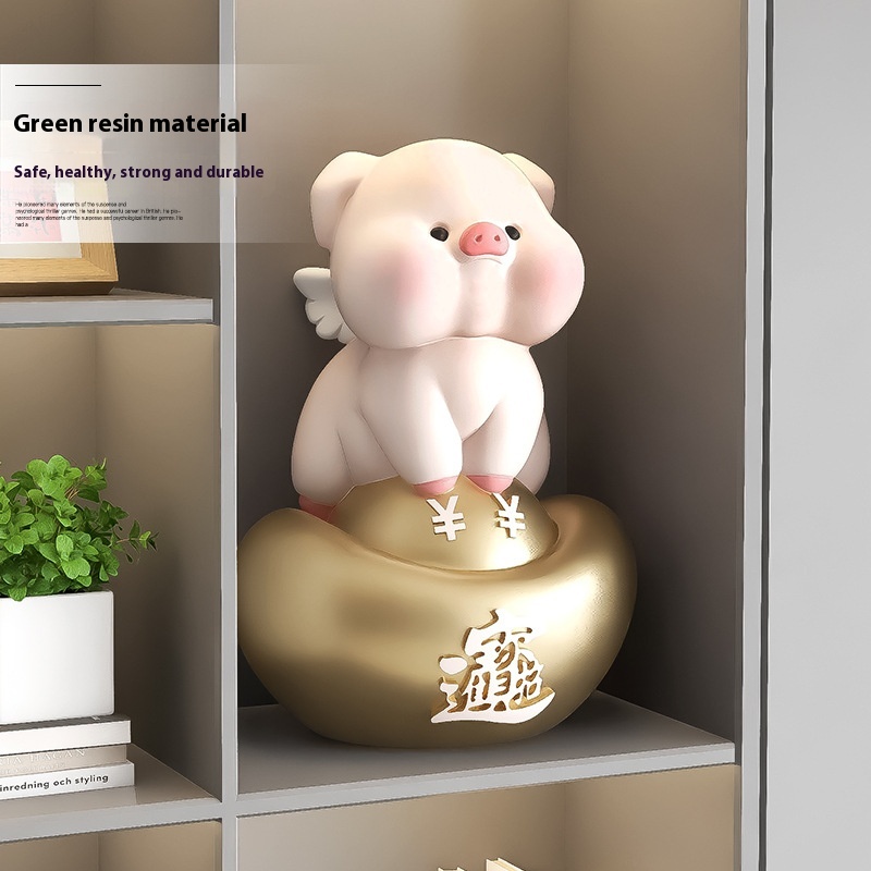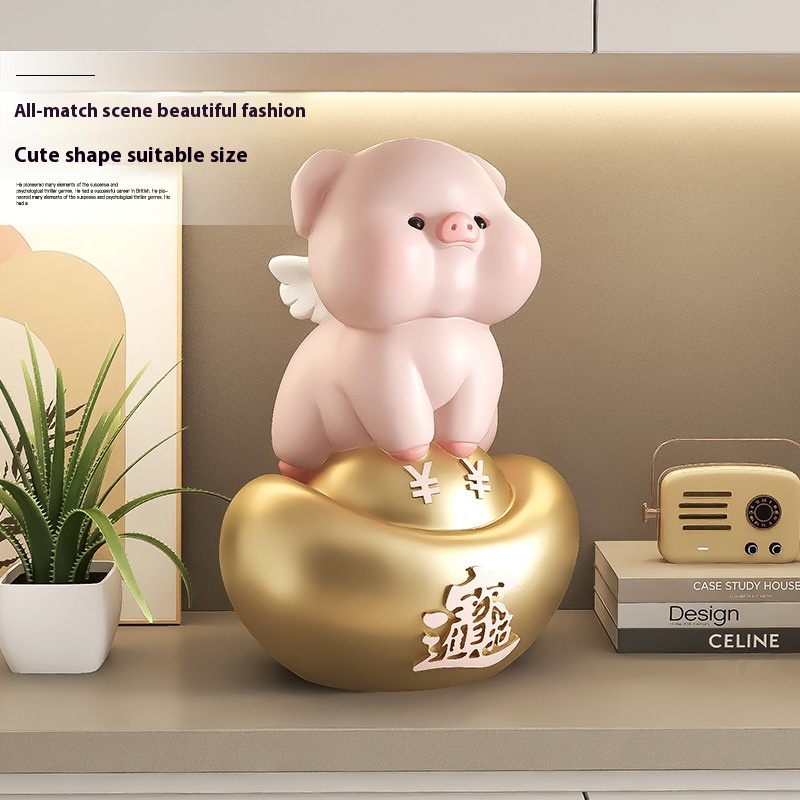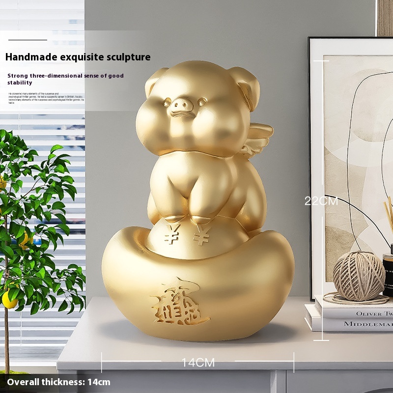 Gold Ingot Zodiac Pig Piggy Bank Ornament–ADecorative Piece For The Living Room,Foyer,And Office Desk.