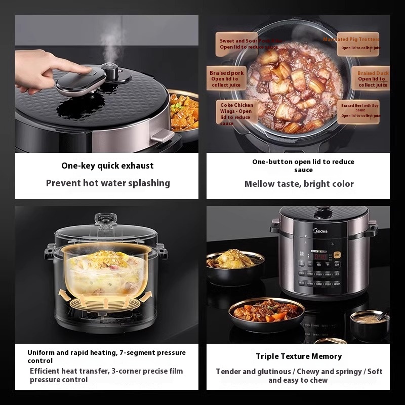 Midea Electric Pressure Cooker Household Double Gallbladder Pressure Cooker4/5/6 LMultifunctional Rice Cooker Fully Automatic Intelligent6-Person Official