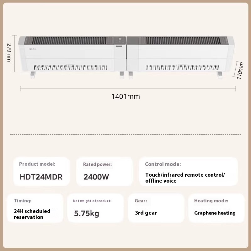 Midea High-power Voice Graphene Folding Skirting Heater2400 WLarge Area Waterproof Energy Saving