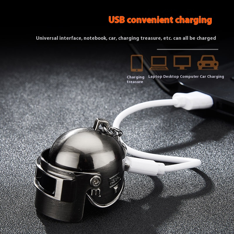 Creative Jedi Survival Eating Chicken Game Level3 Head Model Peripheral Keychain USBCharging Lighter Windproof