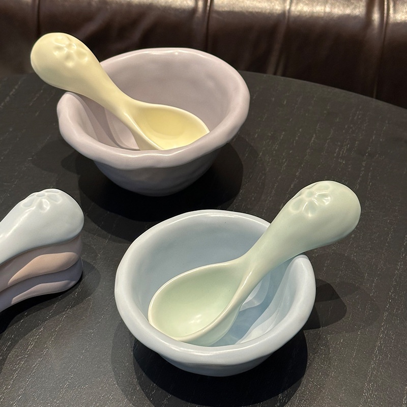 Japanese Ceramic Small Spoon Household Underglaze Soup Spoon Cute High-value Milk Spoon Style