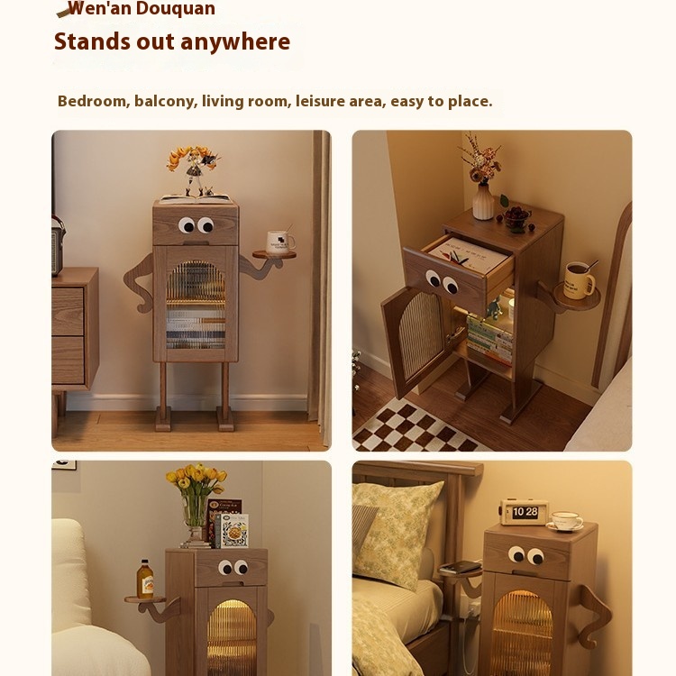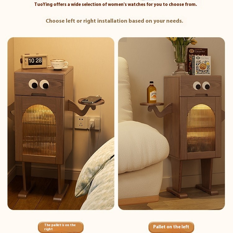 Robot Bedside Table With Lamp Solid Wood Sofa Side Table Side Cabinet Living Room TVStorage Cabinet Creative Bedside Table