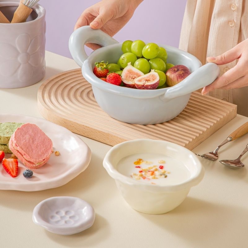 Underglaze Ceramic Tableware Suit Dishes And Dishes Tableware Multi-person Eating Cream Wind Rice Bowl Dish Dish Deep Dish Soup Bowl Can Be Microwave Oven