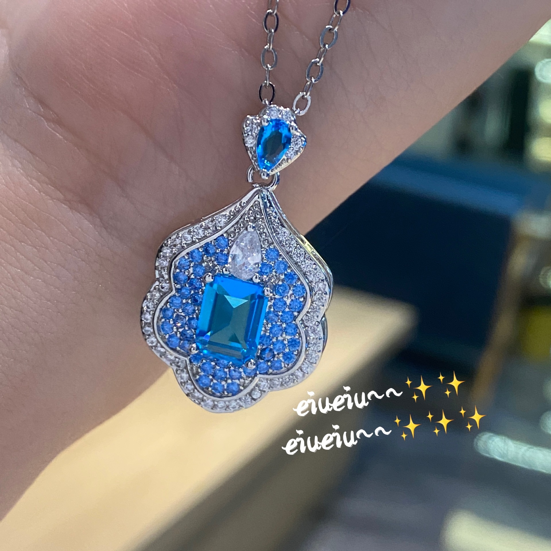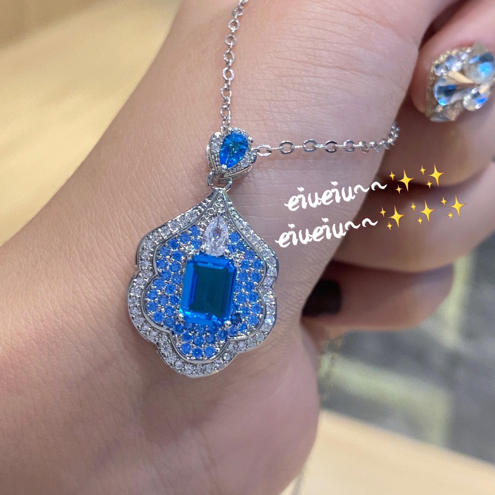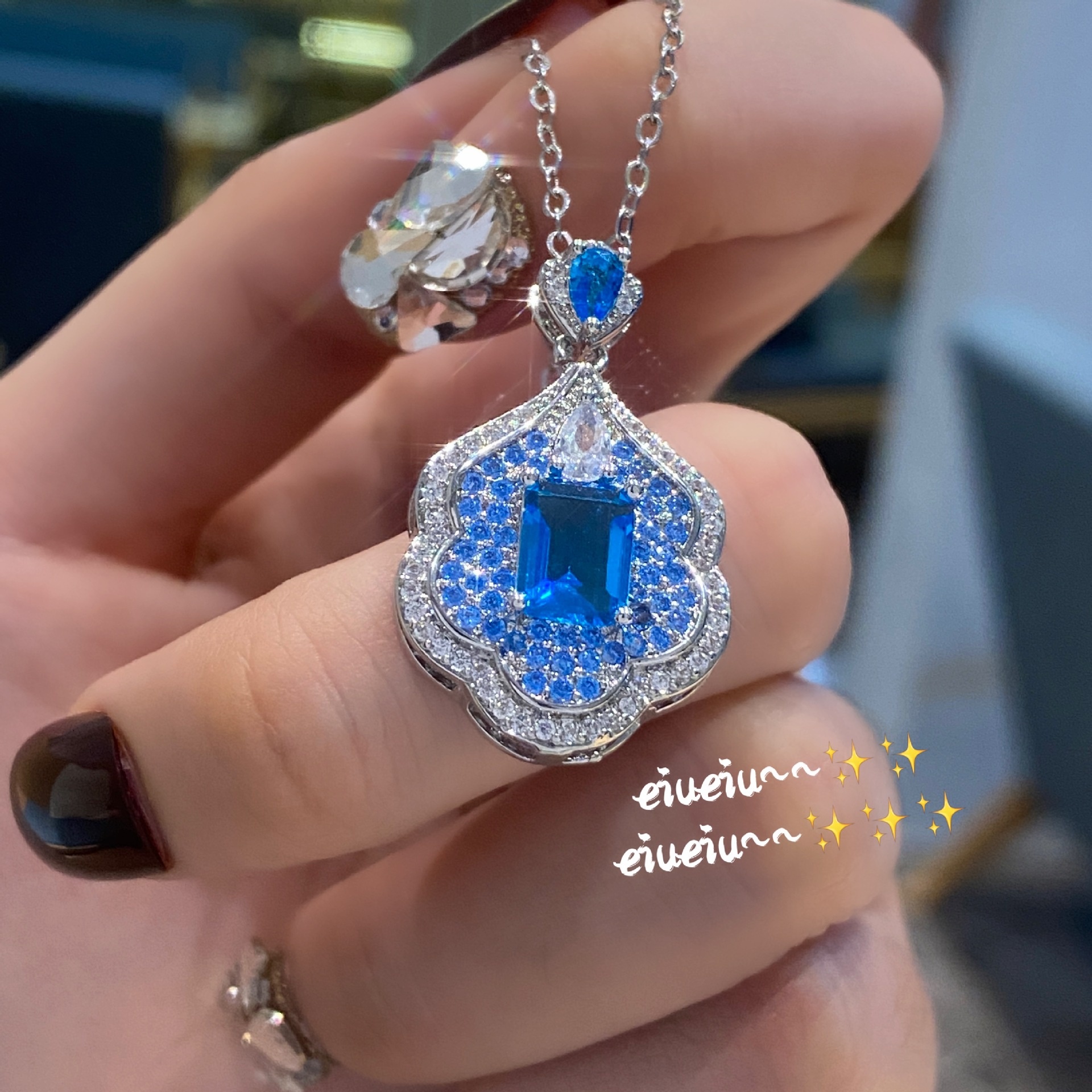 Fashion European And American Style Sky Realm Aquamarine Necklace Luxury Elegant High-grade Inlaid Diamond Pendant