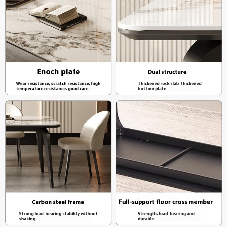 Italian Light Luxury Rock Board Dining Table And Chair Household Small Apartment Modern Simple Rectangular Dining Table Elephant Leg Rock Board Dining Table