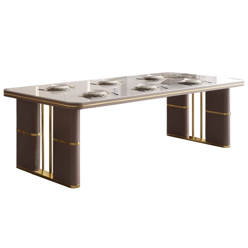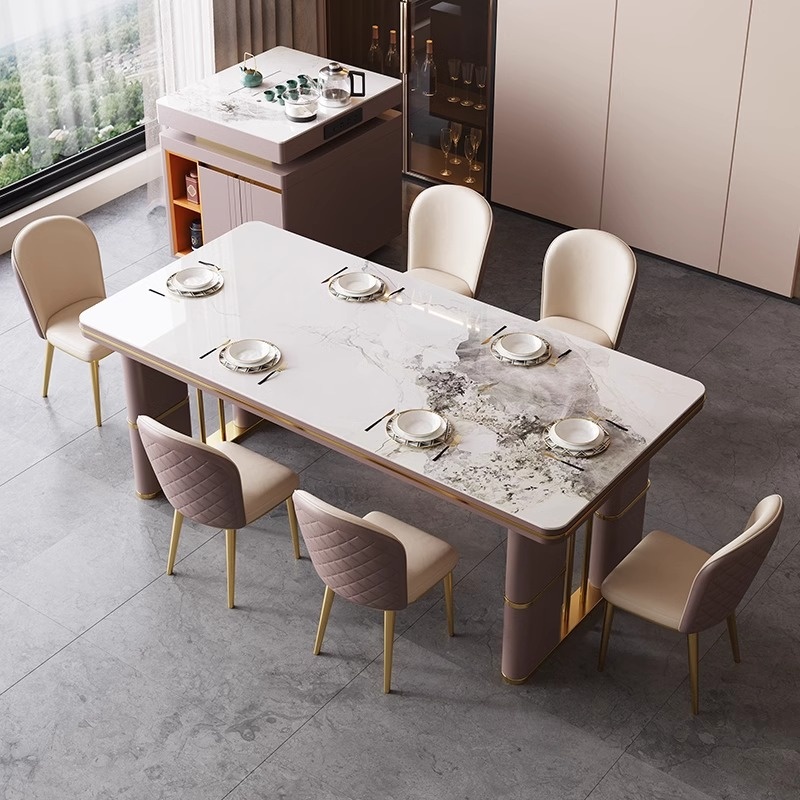 Rock Board Dining Table And Chair Combination Household Small Apartment Modern Simple Rectangular Light Surface Light Luxury Rock Board Dining Table