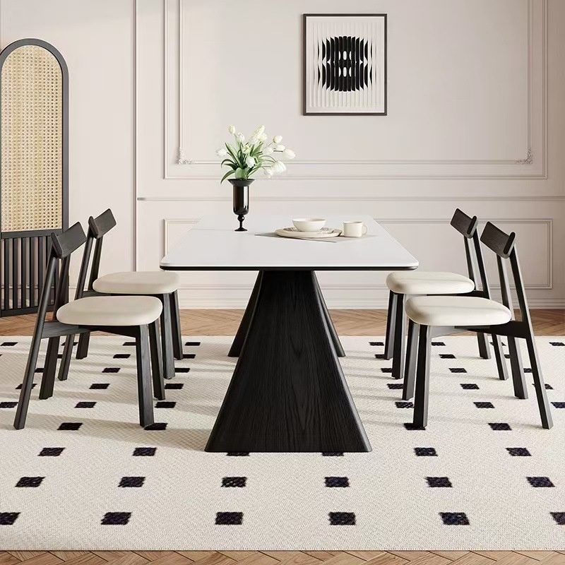 French Retro Style Rectangular Solid Wood Dining Table Modern Simple Rock Board American Style Nordic Style Household Rock Board Table For Small Apartment
