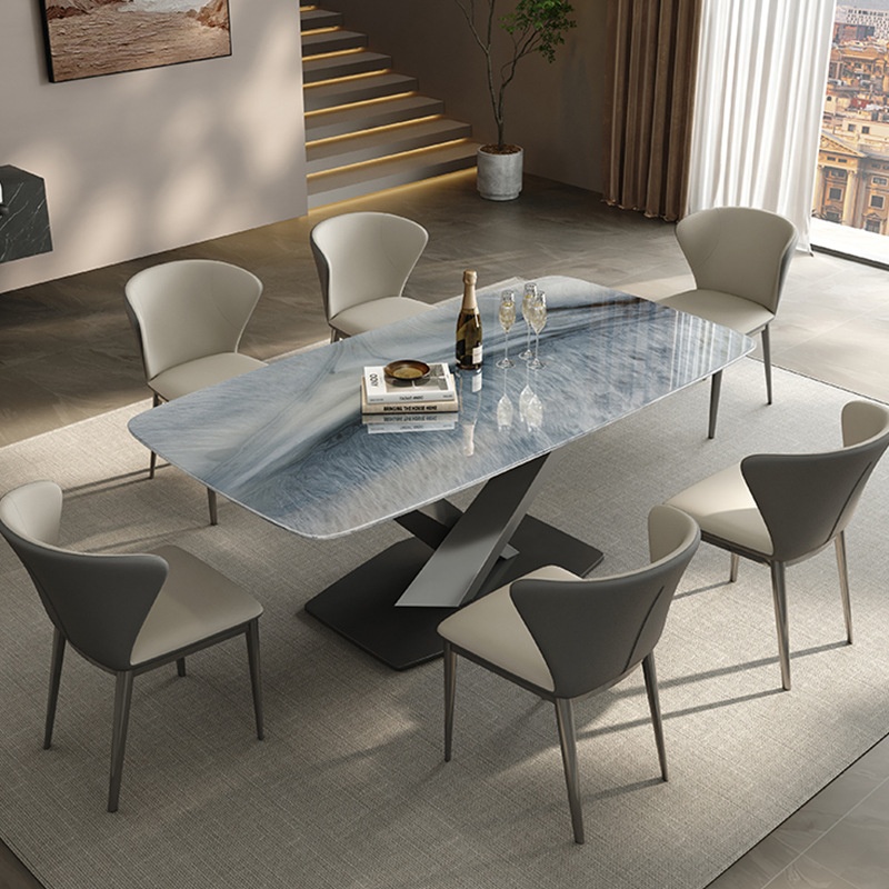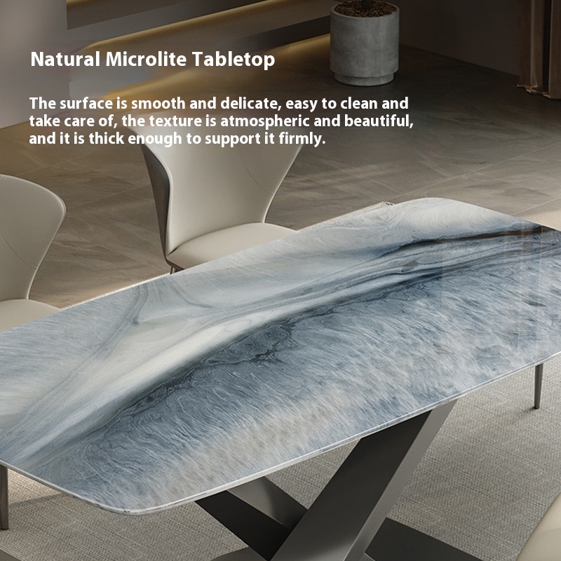 Blue Whale Sand Microcrystalline Dining Table Italian Style Light Luxury High-end Modern Simple Luxury Stone Villa Natural Stone Dining Table And Chair Combination