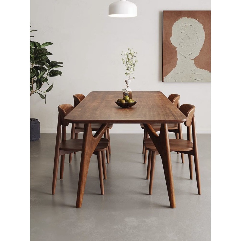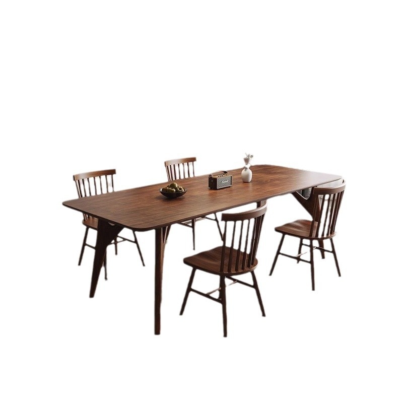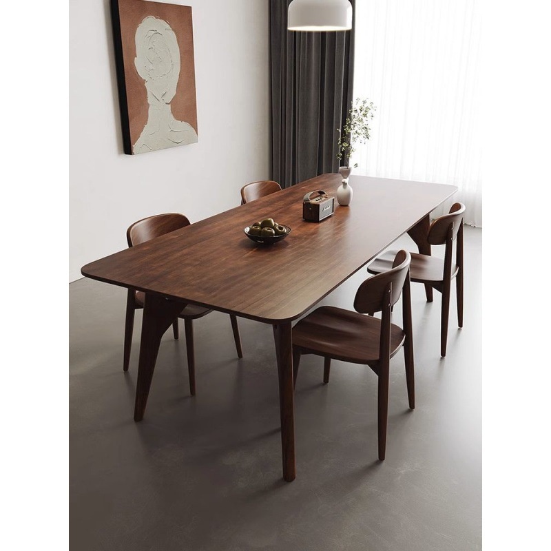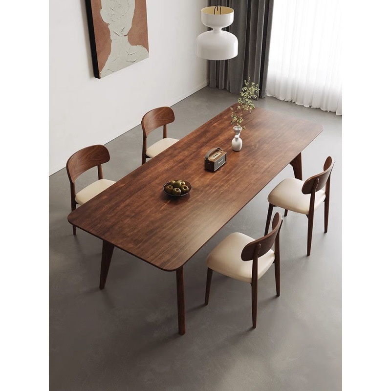 Full Solid Wood Walnut Color Nordic Style Log Dining Table Household Small Apartment Simple Work Table Dining Table Negotiation Integrated Tea Table