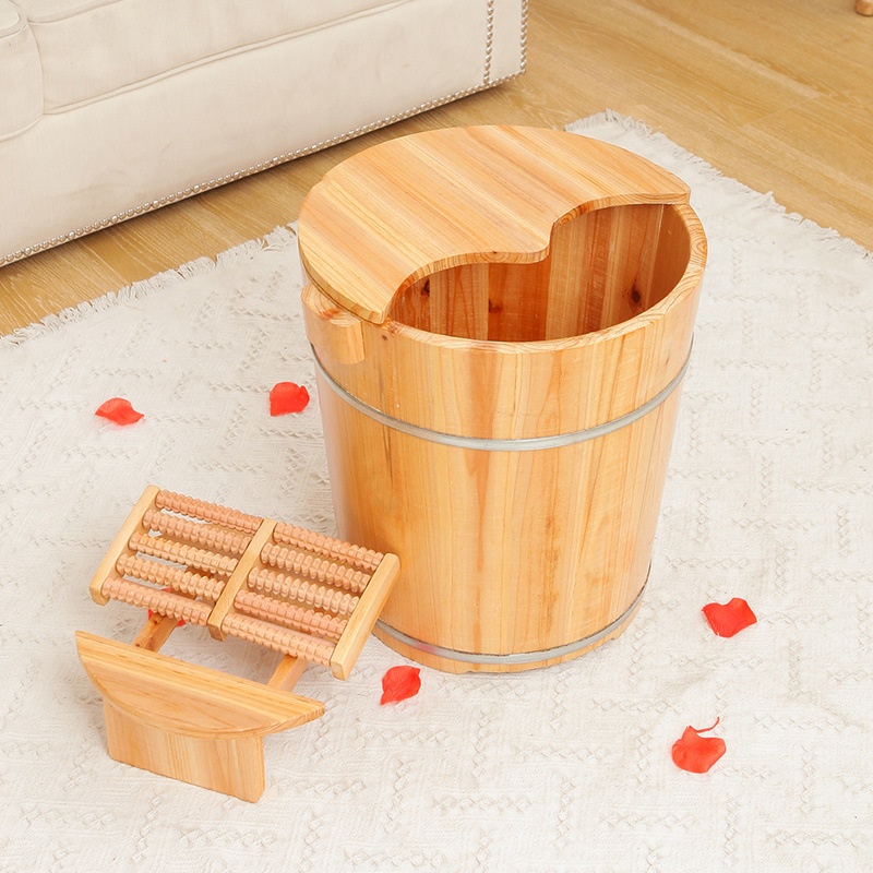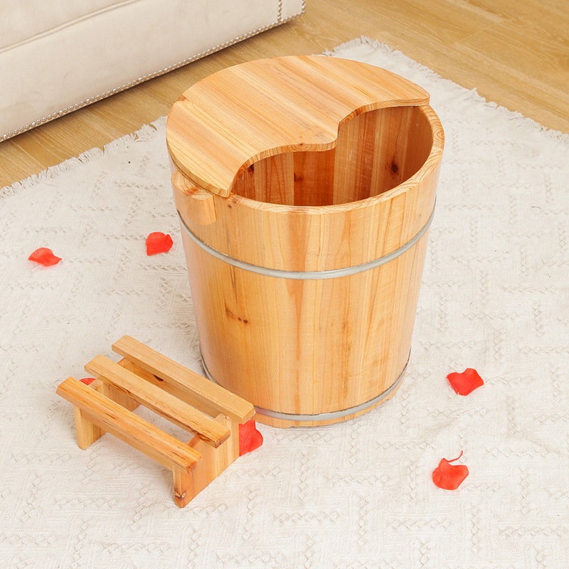 Foot Bucket Height40cm High Fir Foot Bath Wooden Bucket Household With Lid Wooden Foot Wooden Basin For Foot Wash Knee Household Shop