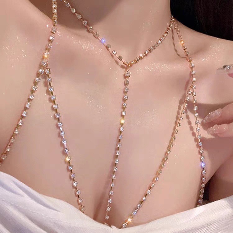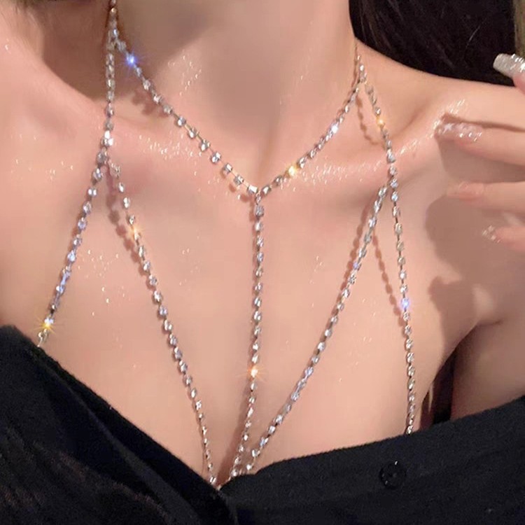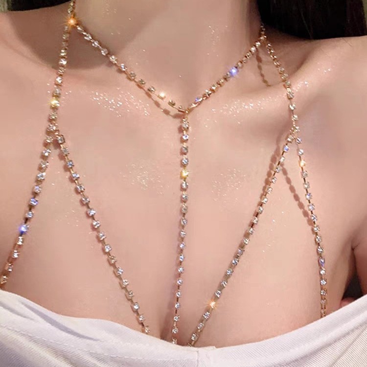 European And American Full Diamond Tassel Chest Chain Sexy Bikini Bra Body Chain Gothic Body Claw Chain Necklace For Women