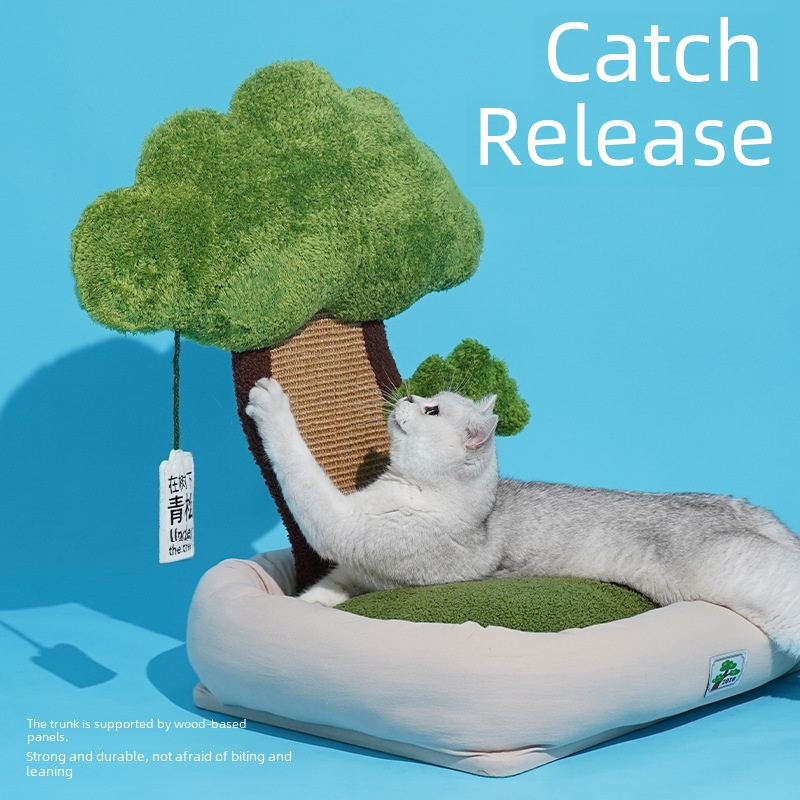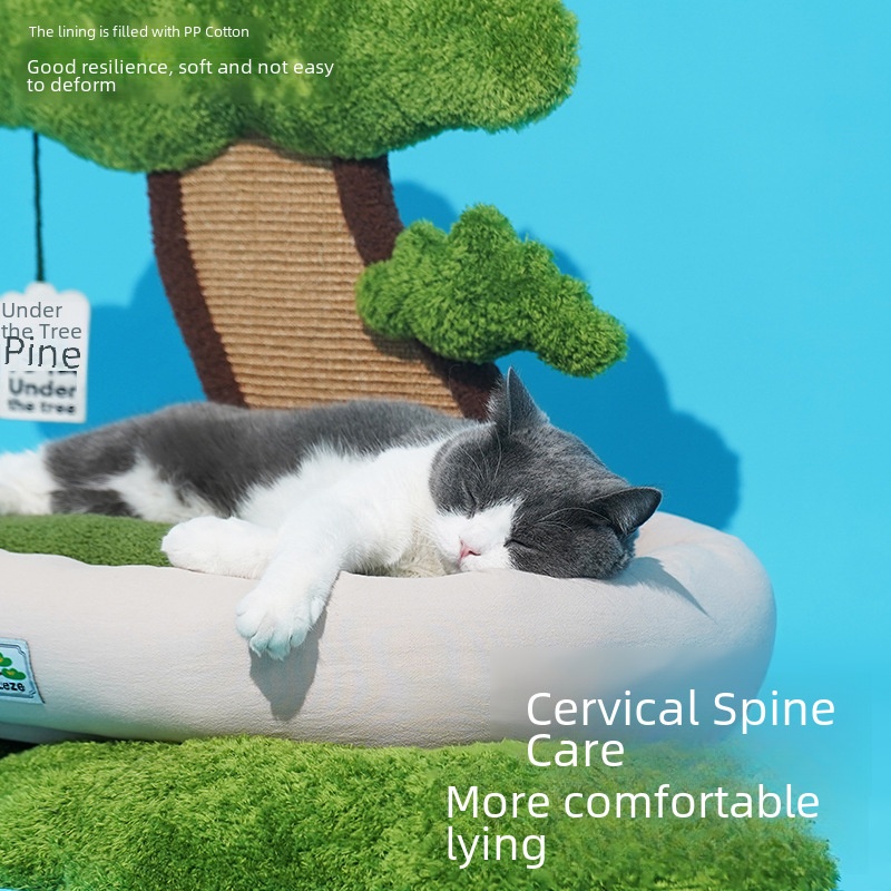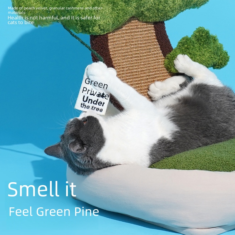Green Pine Nest–APine Tree-pired Cat Nest Featuring ASleeping Area And Scratching Board.Thisulated,Cute,And Chew-resistant Cat Bed Doubles As An Entertaining Pet Bed For Your Feline Friend.