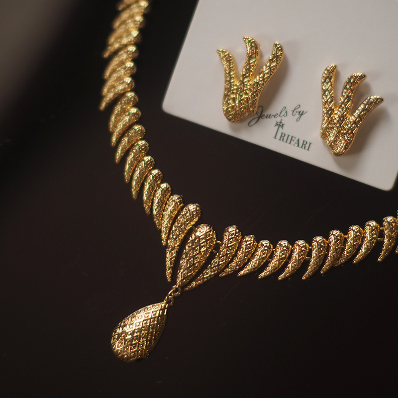 French Retro Tassel Earrings Trifari Cuifali Monet Monet Middle Vintage Ear Clip Necklace