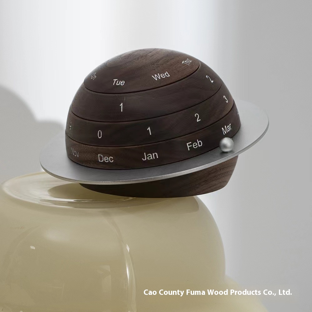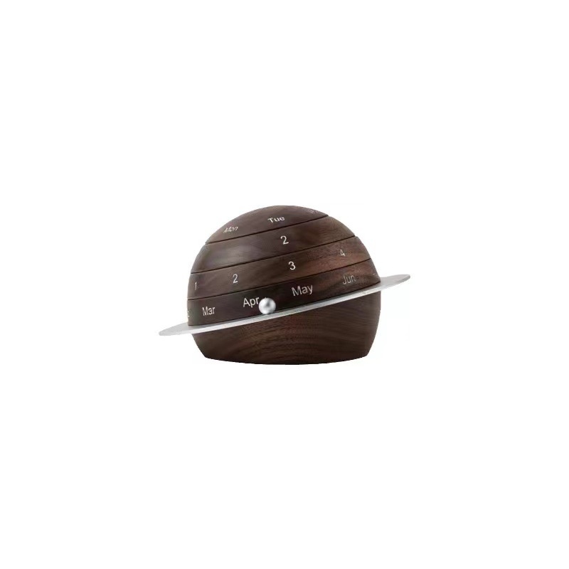 Creative Wooden Calendar Earth-shaped Rotatable Calendar Decoration Ornaments Home Table Perpetual Calendar Set Table Calendar Rack