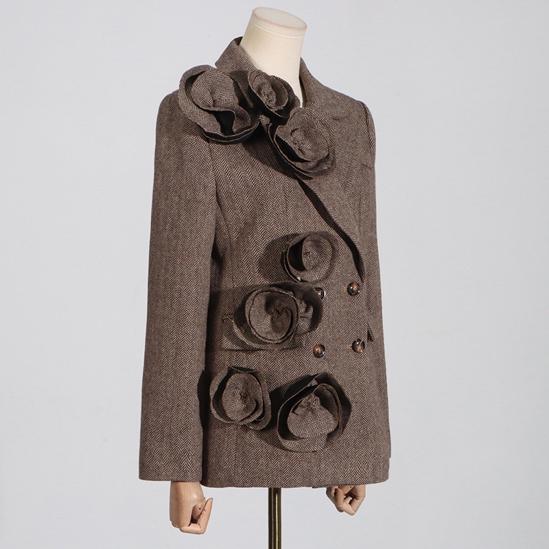Autumn Temperament Commuter Style Handmade Three-dimensional Flower Decoration Stitching Double-breasted Women's Suit Jacket