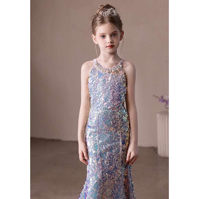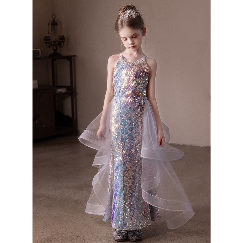 Children's Dress Host Sequ Birthday Girl's Fishtail Princess Dress Model Show Piano Performance Dress High Sense