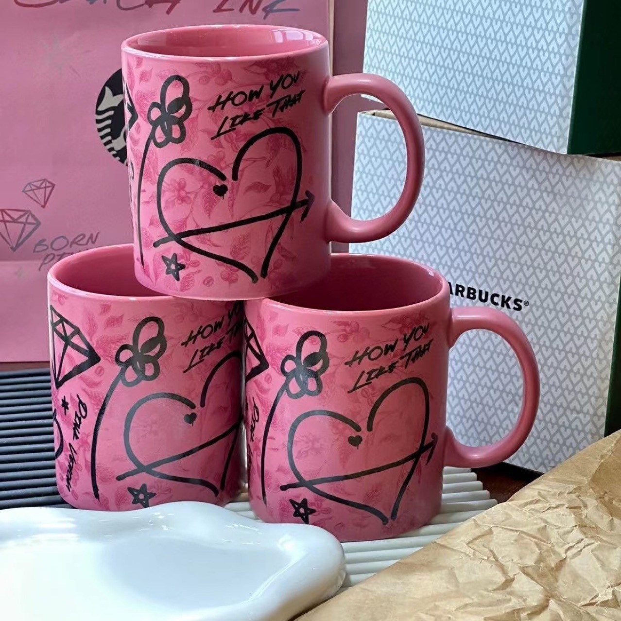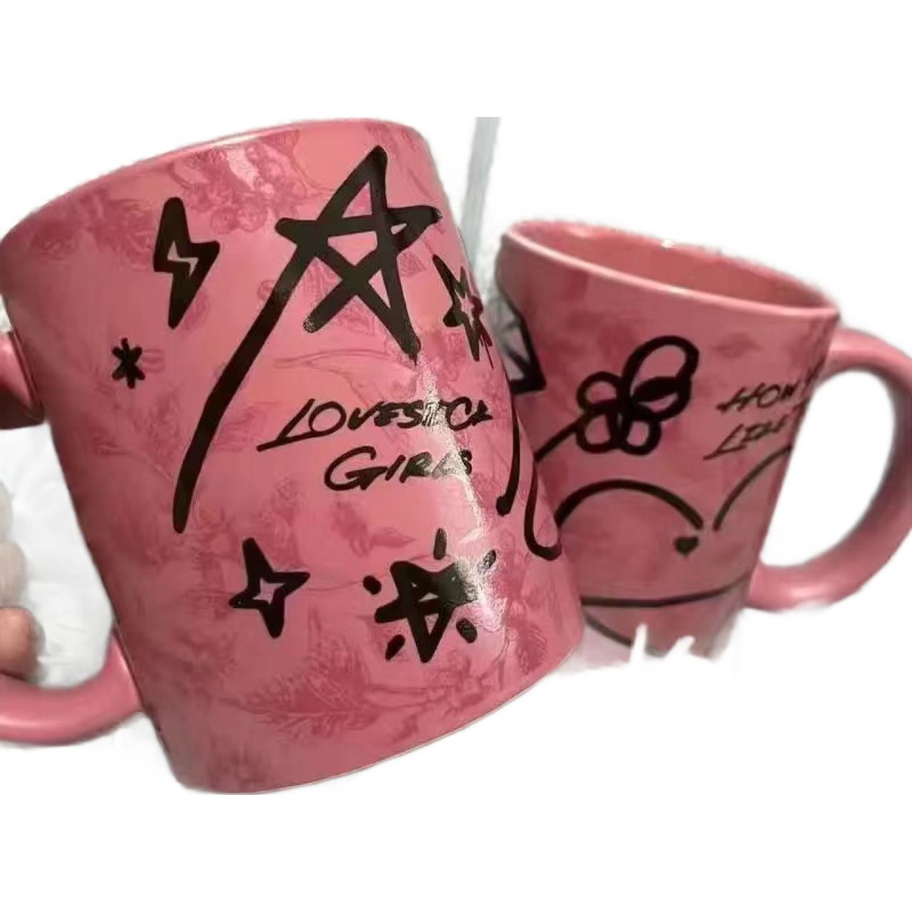 Star Joint Pink Graffiti Mug High Color Value Office Convenient Coffee Mug Ceramic Mug In Stock Batch