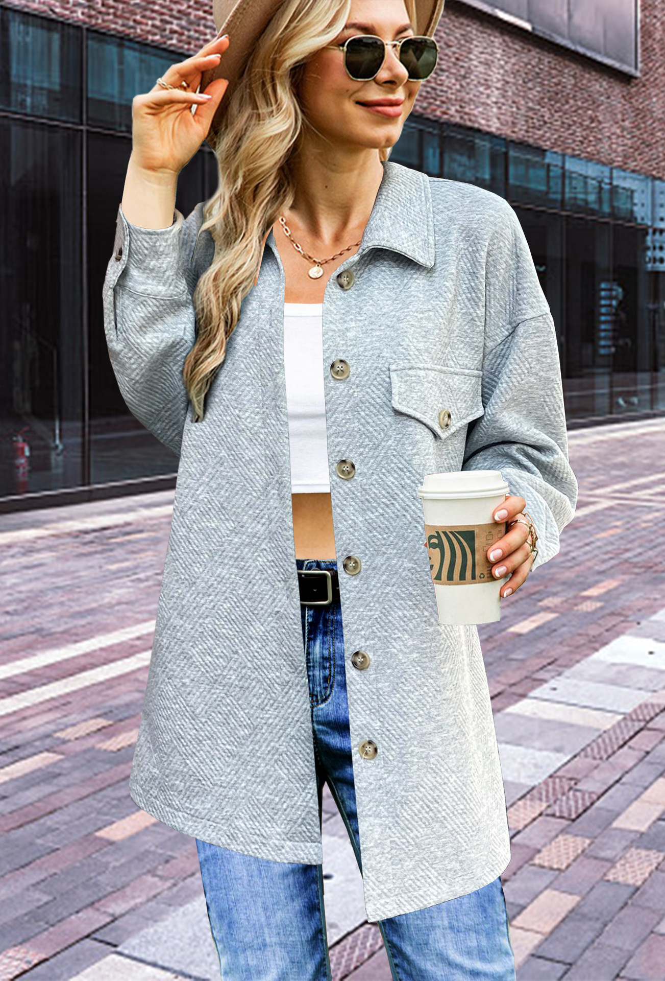 Autumn And Winter Women's Clothing Foreign Trade Independent Station European And American Products Polo Collar Button Jacket Women