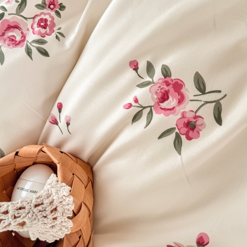 Small Fresh Lace Floral Cloud Waxy Cotton Four-piece Student Dormitory Bed Sheets Single Quilt Cover Machine Washable Four-season Style