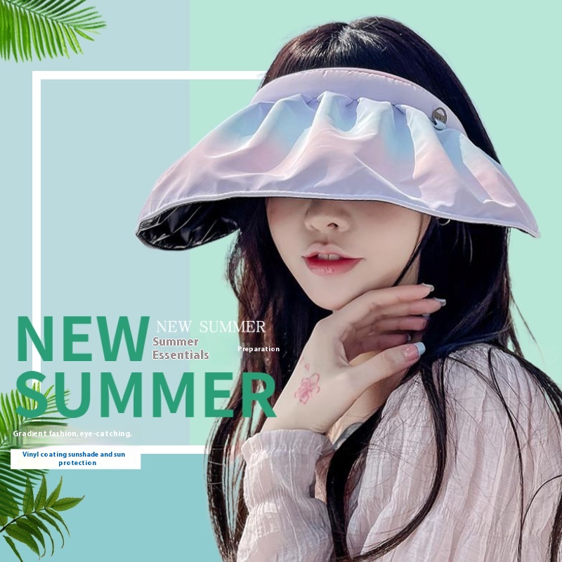 Gradient Sunscreen Shell Cap Women's Hat Summer Casual All-match Anti-UVBlack Glue Empty Top Headband Sunhat