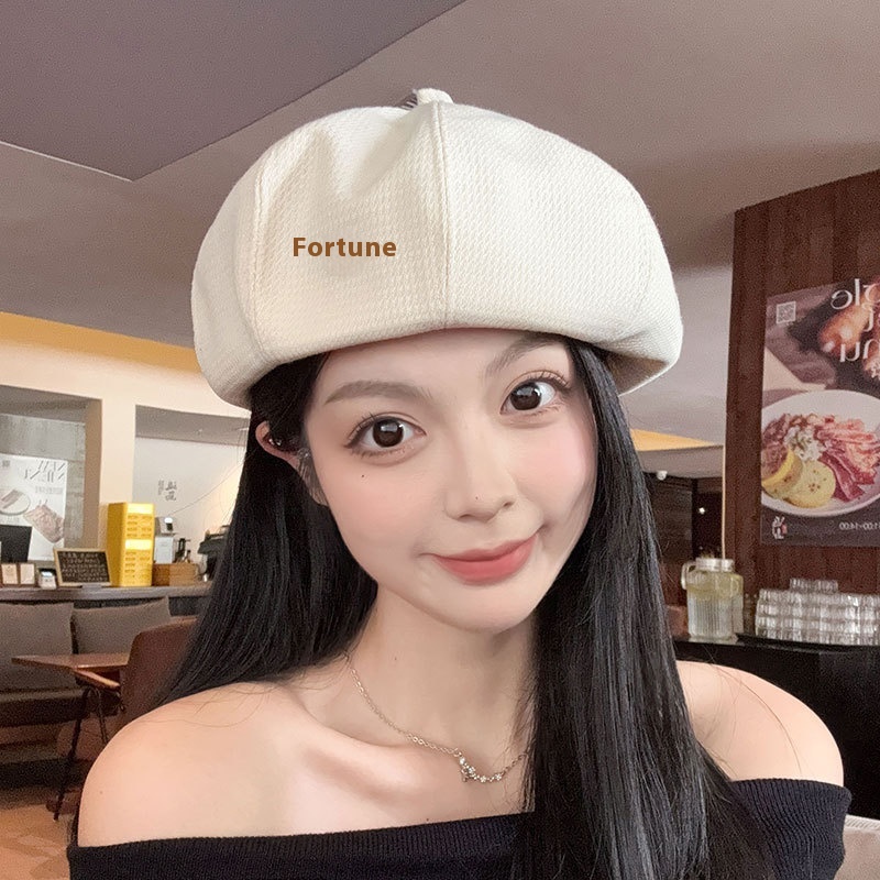 Beret Women's Spring Autumn And Winter Big Head Circumference Face Small Korean Brown Painter's Hat Autumn And Winter Octagonal Hat