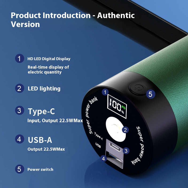 Tesla4680/4695 Billion Weft Series Mobile Power With LEDFlashlight30000 MAFast Charging Treasure