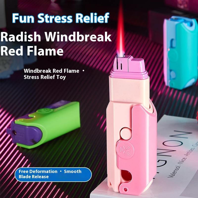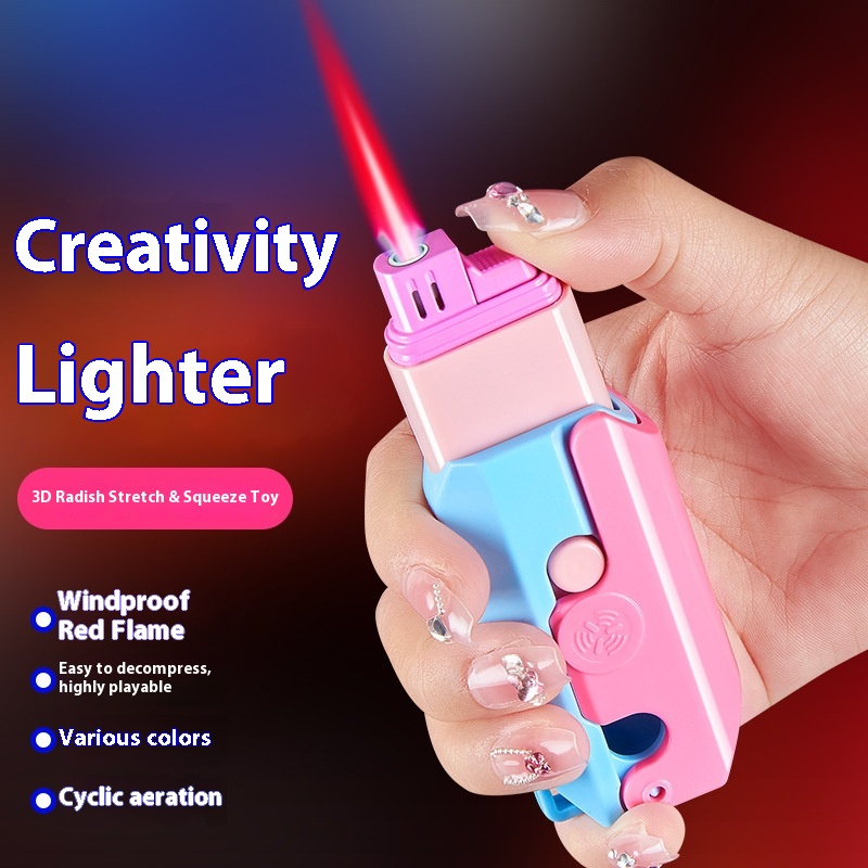(whole Platform AGeneration Of Hair)Windproof Pink Flame Radish Knife Lighter Retractable Creative