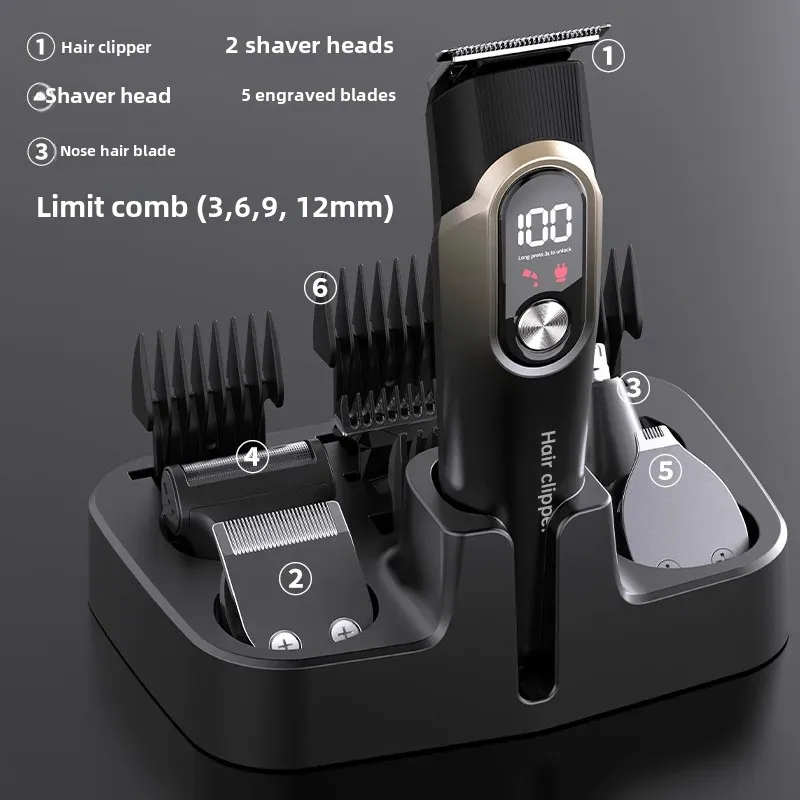Multi-Functional Hair Clipper Five-In-One Suit Digital Display Electric Trimmer Adjustable Carving Haircut Tool For Home Use