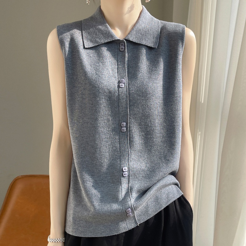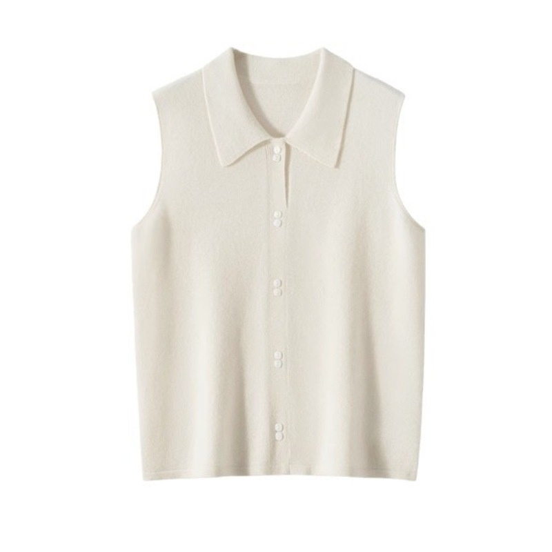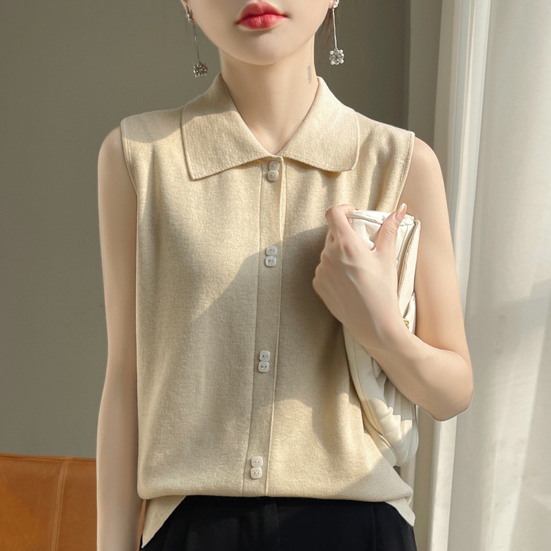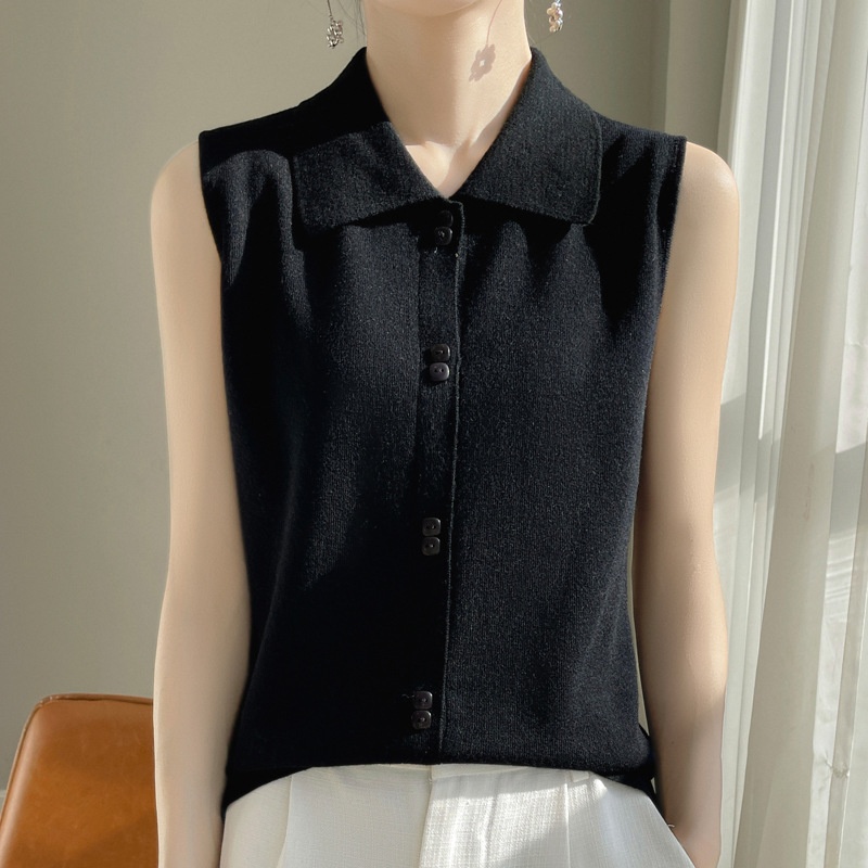 Spring And Autumn Versatile Sleeveless Bottoming Top Inner Wear Overlapping Polo Shirt Collar Worsted Wool Knitted Vest For Women