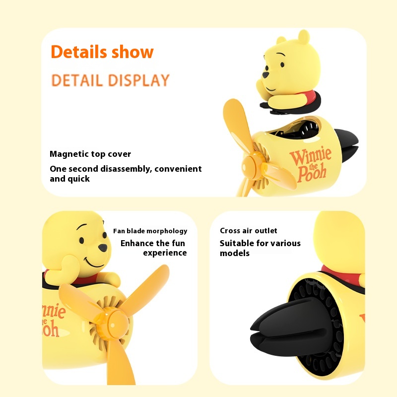 Disney Winnie The Pooh Small Plane Car Aromatherapy Air Outlet Perfume Ornaments Fan Car Fragrance Car Supplies