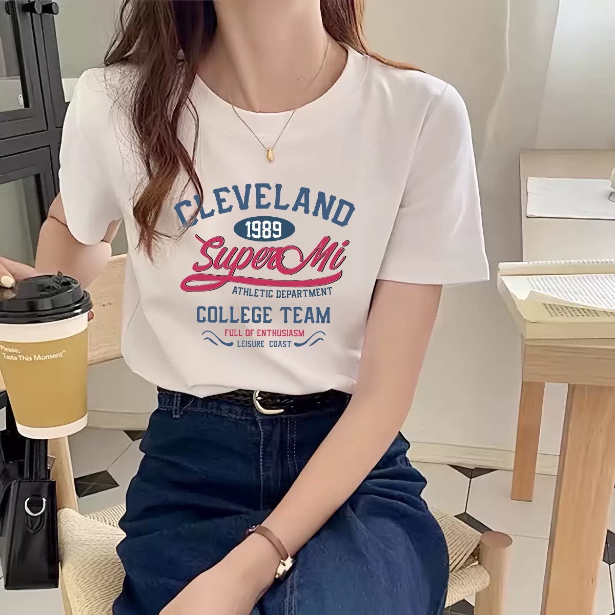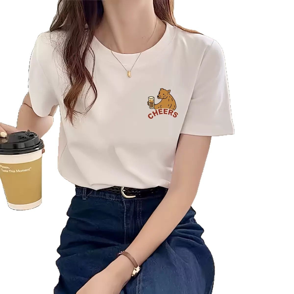 Shoulder Small Fresh Short-sleeved T-shirt Women's Summer Round Neck Korean Style Loose Top Inner Base Shirt For Small Men