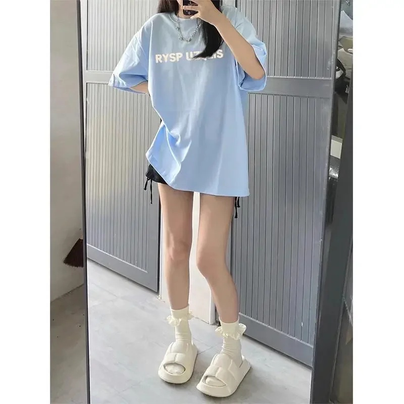 Blue Heavy Cotton Short Sleeve T-shirts Y Brand Half Sleeve Women's Summer Style Style Fit Top Couple Outfit