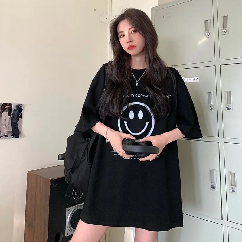 Loose-fit Medium-length Korean Version Spring Autumn Couple Letter Print Disappearing Short Sleeves T-shirt Top Women