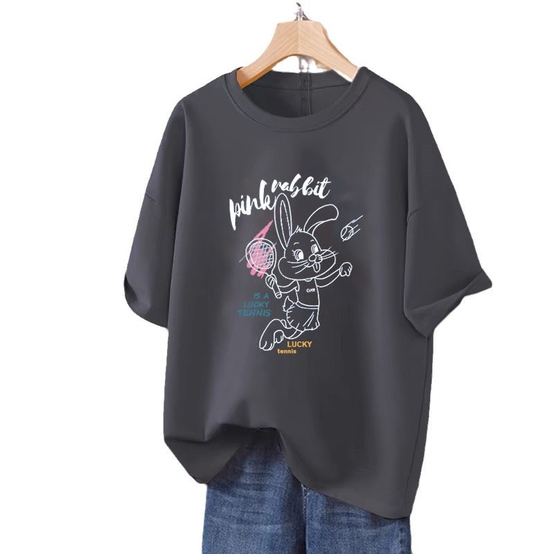 Loose Plus Size 100 Cotton Short-sleeved T-shirt Women's Style Belly-covering Slimming Cartoon Casual Design Top