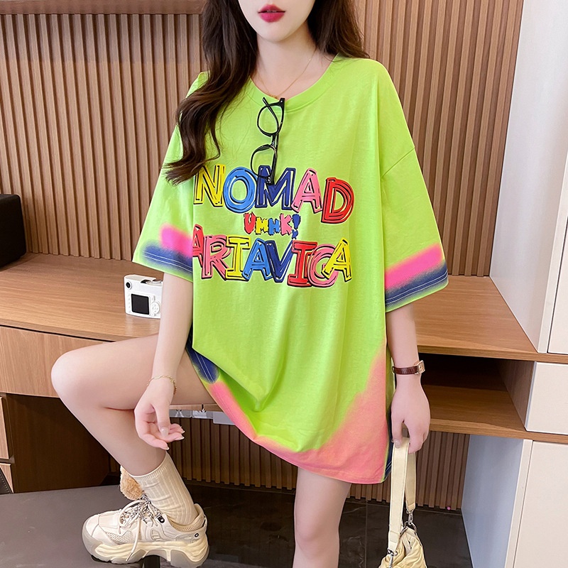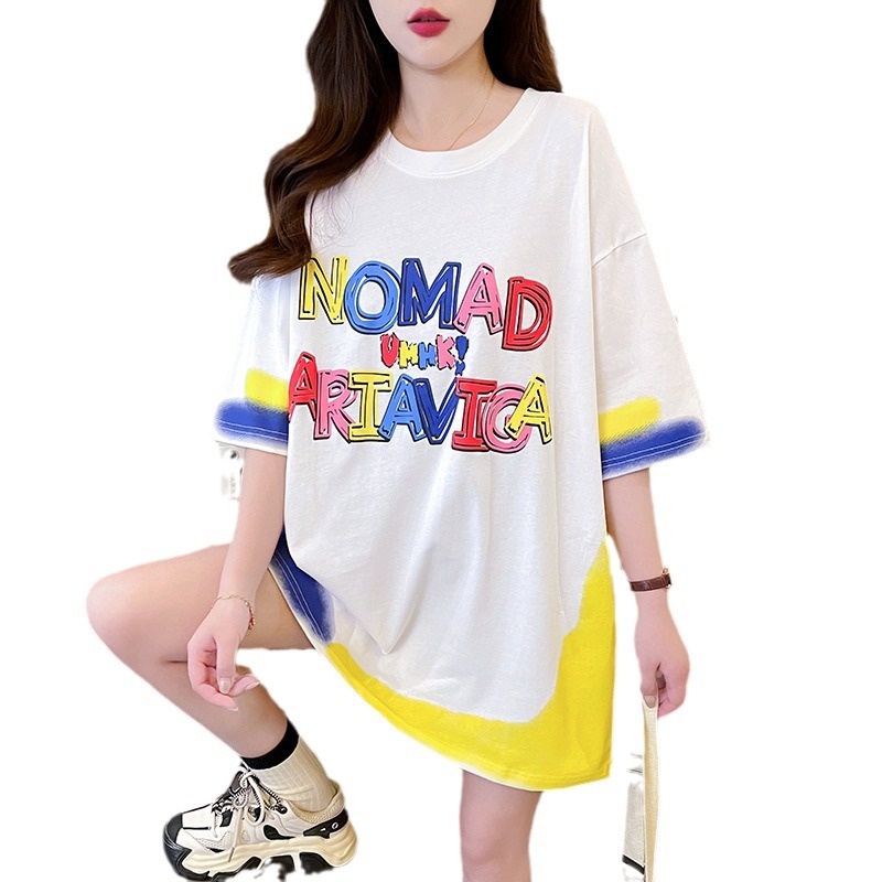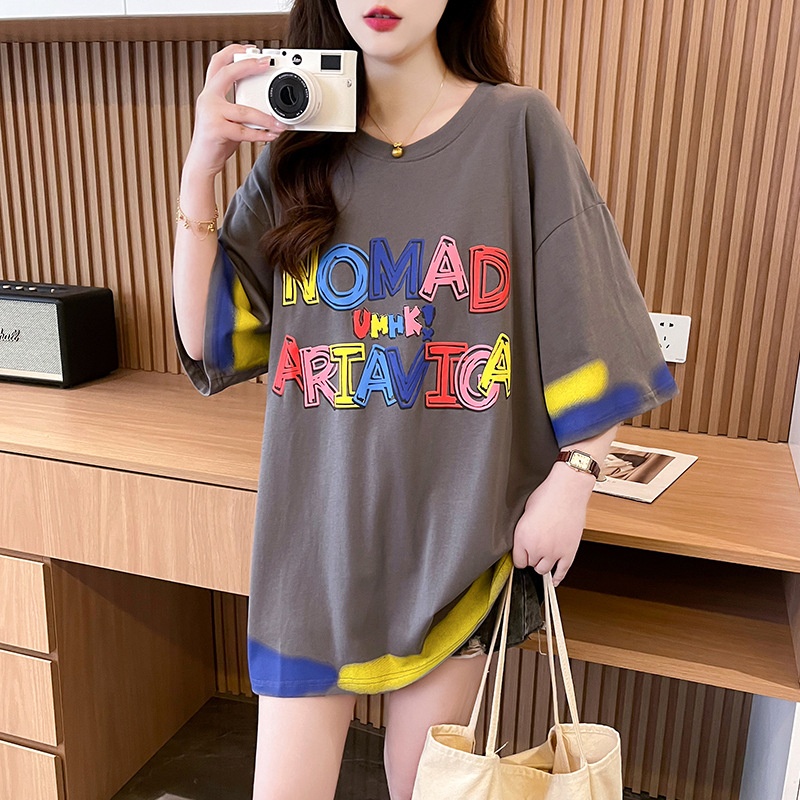Letter T-shirt Women's Mid-length Design Sense Loose Large Size Short Sleeve Crewneck Top Women's