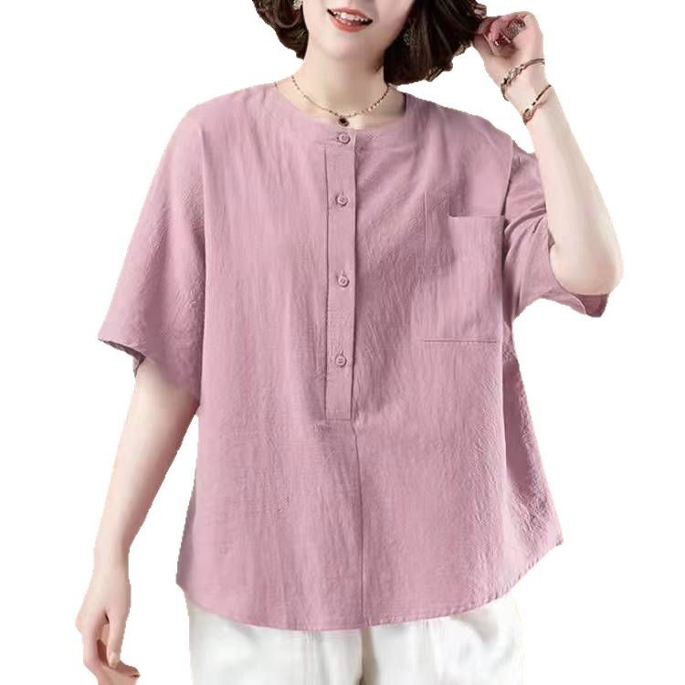 Short-sleeved T-shirt Women's Plus Size Women's Spring And Summer Middle-aged Mother Loose Belly Covering Shirt Top