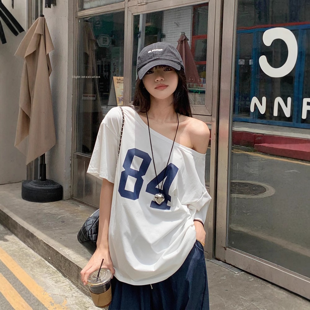 T-shirt Women's T-shirt Loose Casual All-match Slimming Print Women's Summer Short-sleeved Top