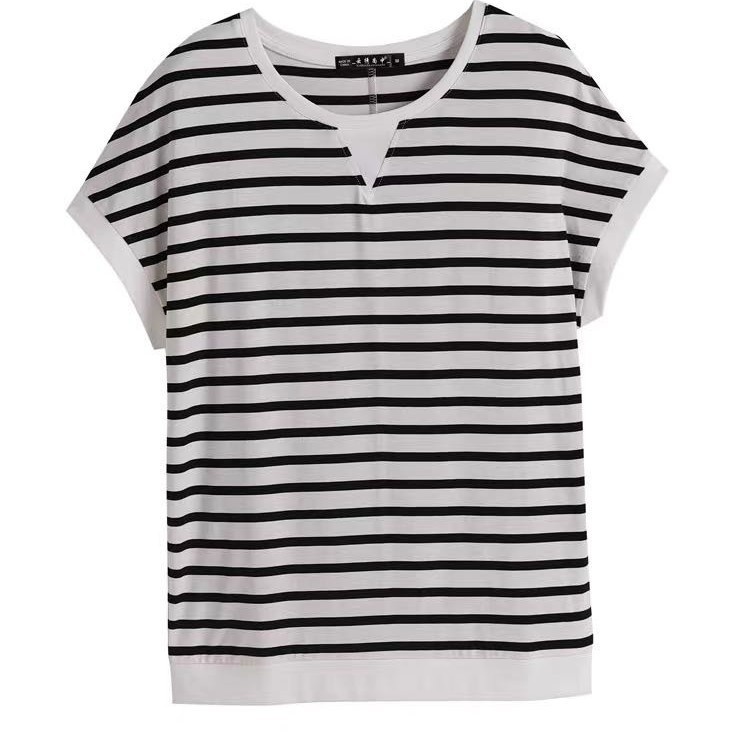 Short-sleeved T-shirt Women's Summer Striped T-shirt Loose Korean Top Women's Middle-aged Mother's Plus Size Women's Fashion